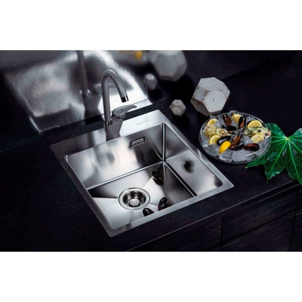 Мойка кухонная Omoikiri из коллекции Akisame 46-LG имеет размеры 460х510 мм., изготовлена из нержавеющей стали. Форма — прямоугольная, одна чаша с отверстием для смесителя. Сифон в комплекте. Ширина чаши 41. Врезной монтаж.