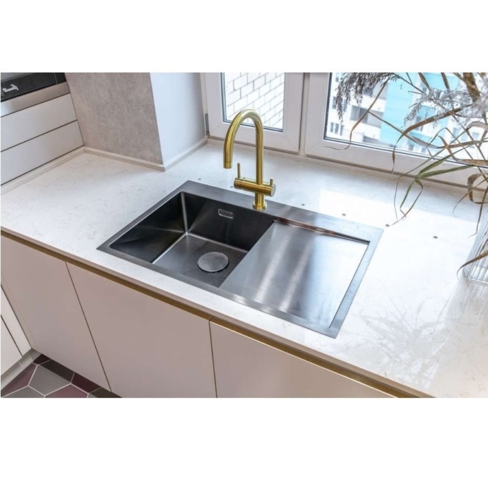 Мойка кухонная Omoikiri из коллекции Akisame 78-GM-L имеет размеры 780х510 мм., изготовлена из нержавеющей стали. Форма — прямоугольная, одна чаша с отверстием для смесителя. Сифон в комплекте. Ширина чаши 40. Врезной монтаж. Имеется крыло.