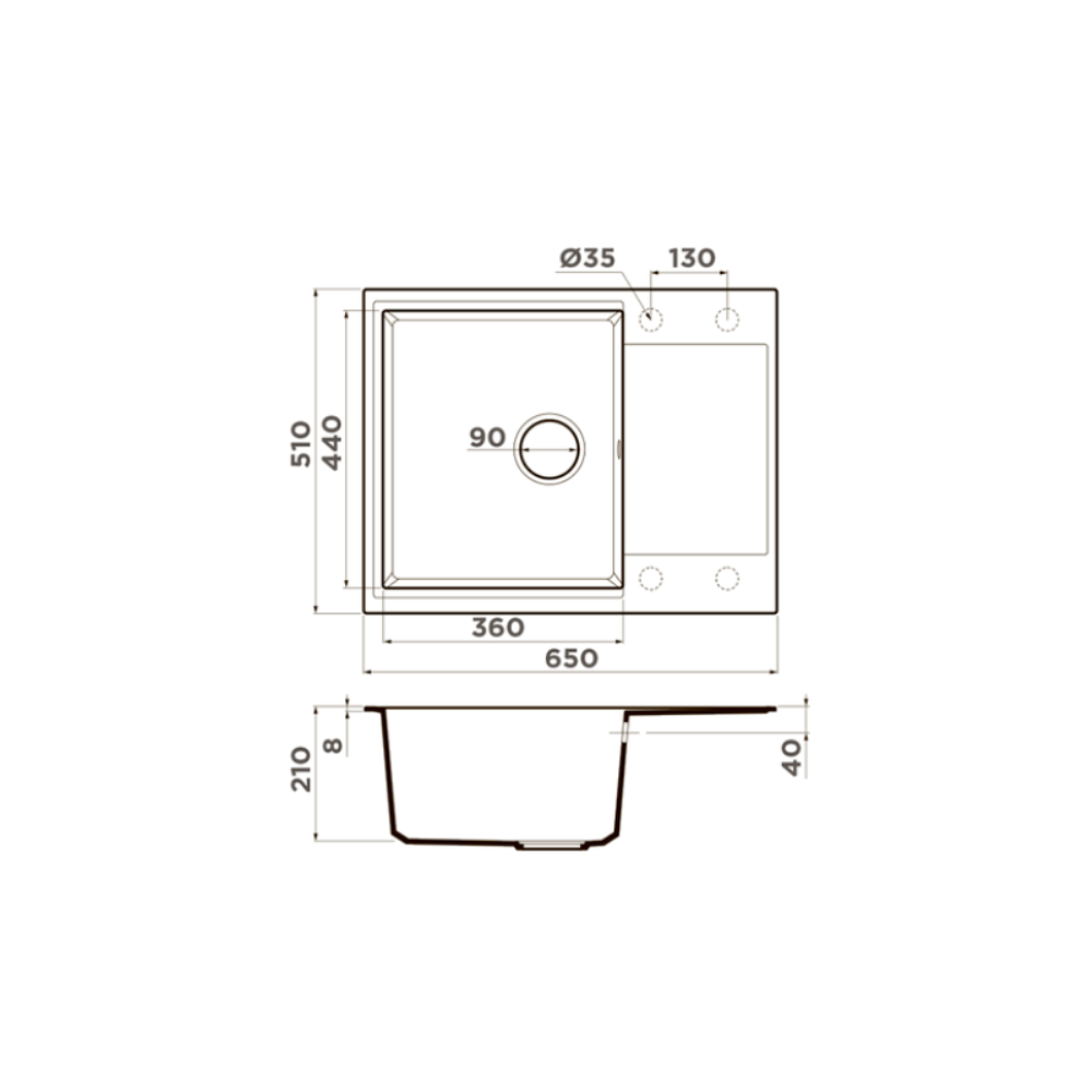 Мойка кухонная Omoikiri из коллекции Daisen 65T-BE имеет размеры 650х510 мм., изготовлена из искусственного гранита. Форма — прямоугольная, одна чаша без отверстия для смесителя. Сифон в комплекте. Ширина чаши 36. Врезной монтаж. Имеется крыло.