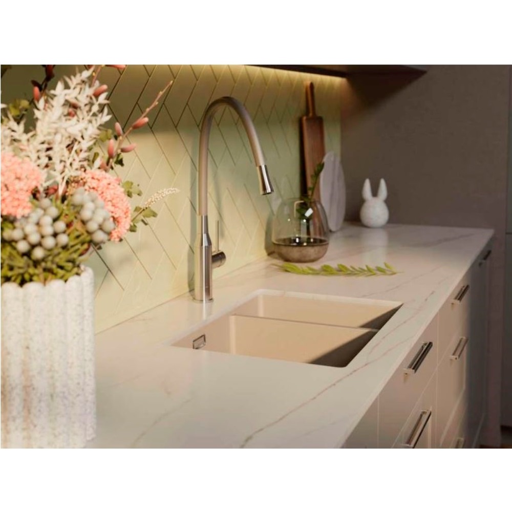 Мойка кухонная Omoikiri из коллекции Kata 52-2-U-SA имеет размеры 550х420 мм., изготовлена из искусственного гранита. Форма — прямоугольная, одна чаша без отверстия для смесителя. Сифон в комплекте. Ширина чаши 33,5. Подстольный монтаж