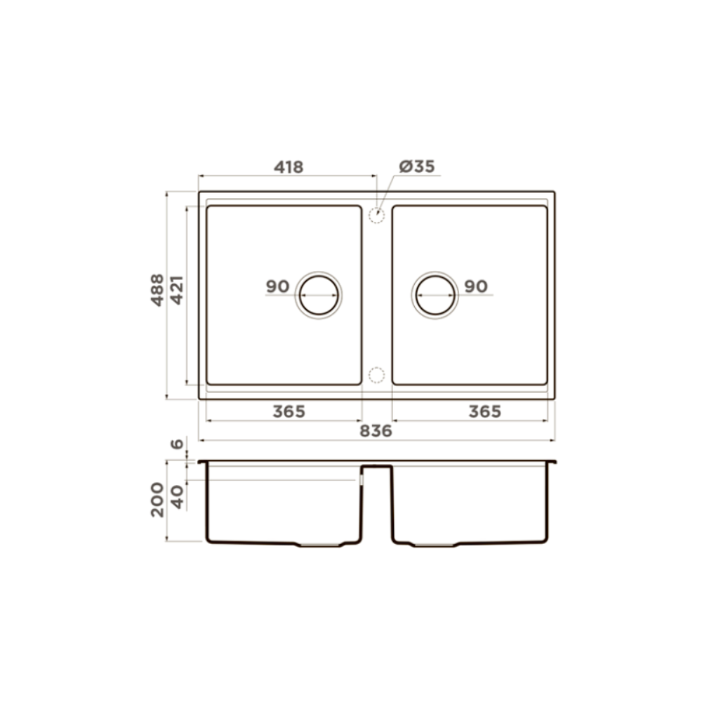 Мойка кухонная Omoikiri из коллекции Kitagawa 83-2-U-WH имеет размеры 836х488 мм., изготовлена из искусственной керамики. Форма — прямоугольная, две чаши без отверстия для смесителя. Сифон в комплекте. Ширина чаши 36,5. Врезной монтаж.