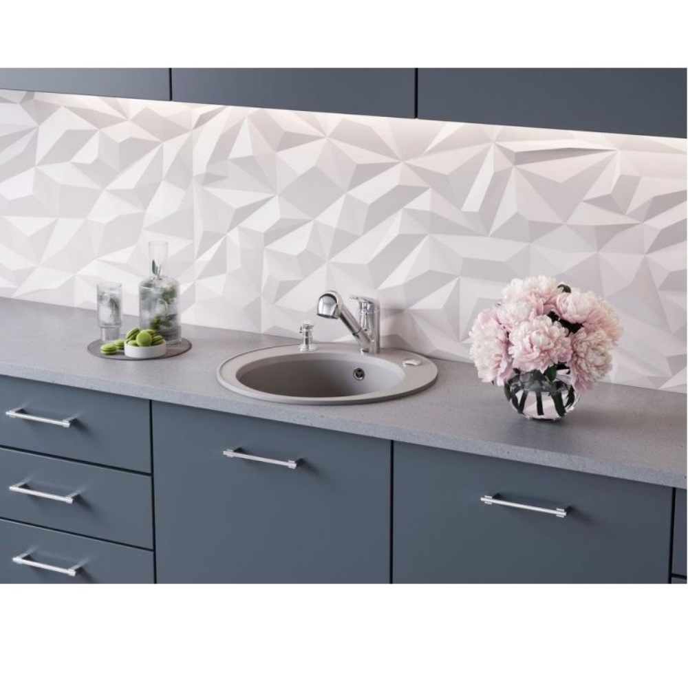 Мойка кухонная Omoikiri из коллекции Miya 50R-GR имеет размеры 505х490 мм., изготовлена из искусственного гранита. Форма — круглая, одна чаша без отверстия для смесителя. Сифон в комплекте. Ширина чаши 37,5. Врезной монтаж.