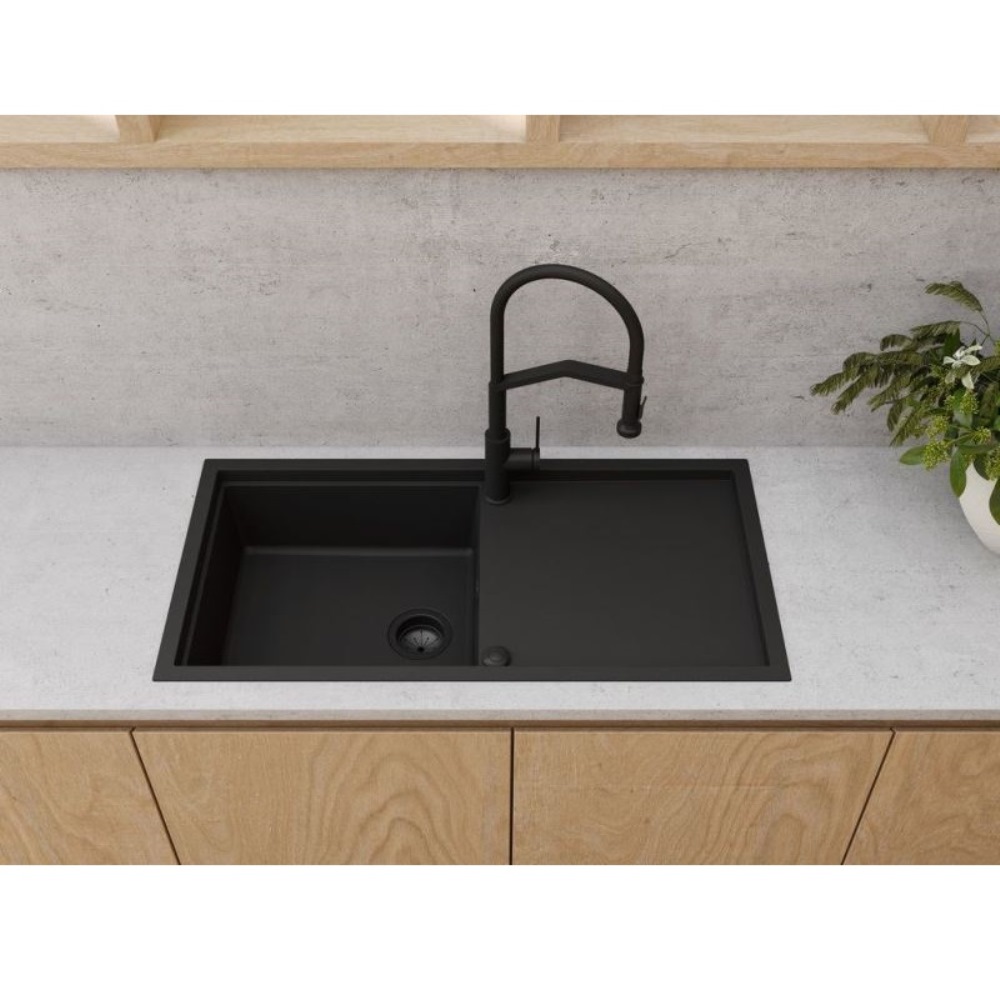 Мойка кухонная Omoikiri из коллекции Sintesi 100-GB имеет размеры 1000х500 мм., изготовлена из искусственной керамики. Форма — прямоугольная, одна чаша без отверстия для смесителя. Сифон в комплекте. Ширина чаши 47. Врезной монтаж. Имеется крыло.