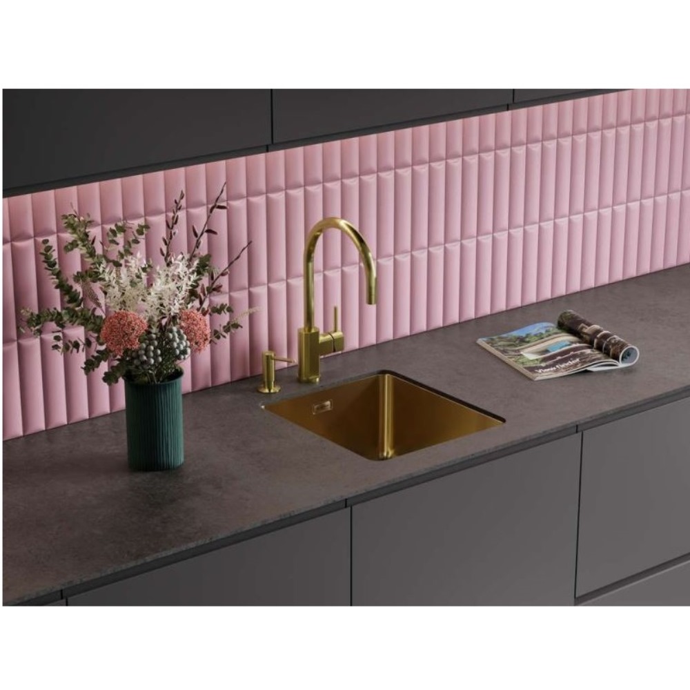 Мойка кухонная Omoikiri из коллекции Tadzava 39-U/I-GM имеет размеры 390х440 мм., изготовлена из нержавеющей стали. Форма — прямоугольная, одна чаша без отверстия для смесителя. Сифон в комплекте. Ширина чаши 35. Подстольный и врезной монтаж.