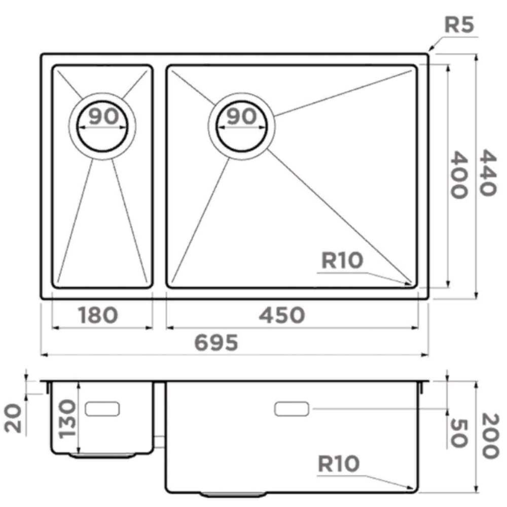 Мойка кухонная Omoikiri из коллекции Taki 69-2-U/IF-LG-R Side имеет размеры 695х440 мм., изготовлена из нержавеющей стали. Форма — прямоугольная, одна чаша без отверстия для смесителя. Сифон в комплекте. Ширина чаши 45. Подстольный и врезной монтаж, монтаж вровень. Имеется дополнительная чаша.