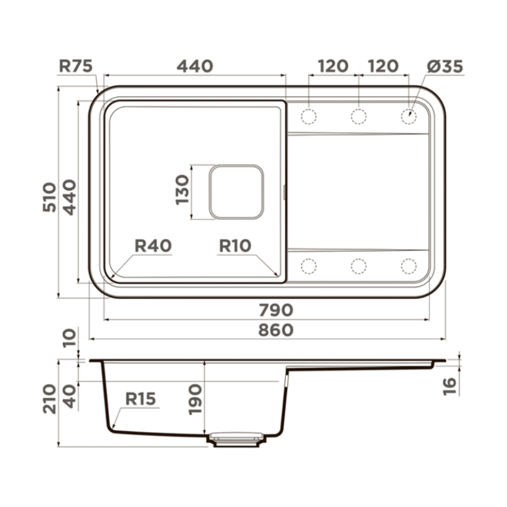 Мойка кухонная Omoikiri из коллекции Tasogare 86-GR имеет размеры 860х510 мм., изготовлена из искусственного гранита. Форма — прямоугольная, одна чаша без отверстия для смесителя. Сифон в комплекте. Ширина чаши 44. Врезной монтаж. Имеется крыло.