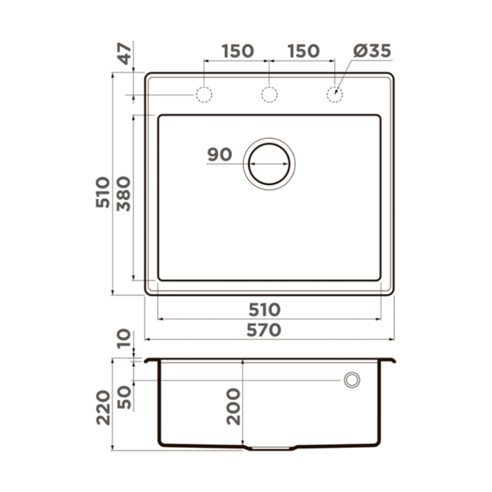 Мойка кухонная Omoikiri из коллекции Tedori 57-BE имеет размеры 570х510 мм., изготовлена из искусственного гранита. Форма — прямоугольная, одна чаша без отверстия для смесителя. Сифон в комплекте. Ширина чаши 51. Врезной монтаж.
