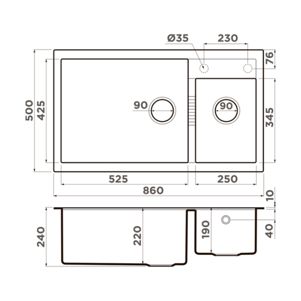 Мойка кухонная Omoikiri из коллекции Tedori 86-2-LB-BL имеет размеры 860х500 мм., изготовлена из искусственного гранита. Форма — прямоугольная, одна чаша без отверстия для смесителя. Сифон в комплекте. Ширина чаши 52,5. Врезной монтаж. Имеется дополнительная чаша.