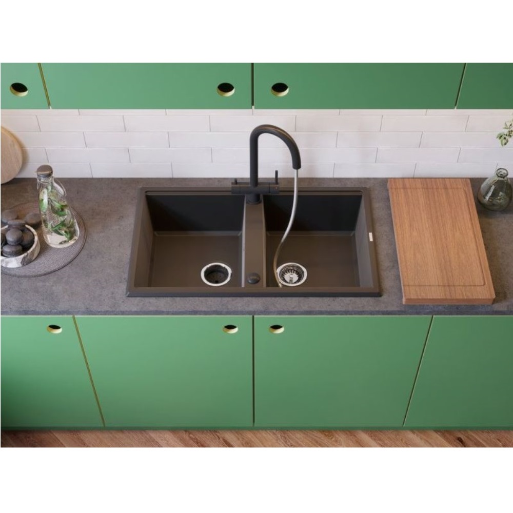 Мойка кухонная Omoikiri из коллекции Tedori 86-2-BE имеет размеры 860х510 мм., изготовлена из искусственного гранита. Форма — прямоугольная, две чаши без отверстия для смесителя. Сифон в комплекте. Ширина чаши 36,5. Врезной монтаж.