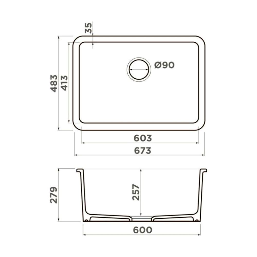 Мойка кухонная Omoikiri из коллекции Torishima 67-U/I-WH имеет размеры 673х483 мм., изготовлена из искусственной керамики. Форма — прямоугольная, одна чаша без отверстия для смесителя. Сифон в комплекте. Ширина чаши 60,3. Подстольный и врезной монтаж.
