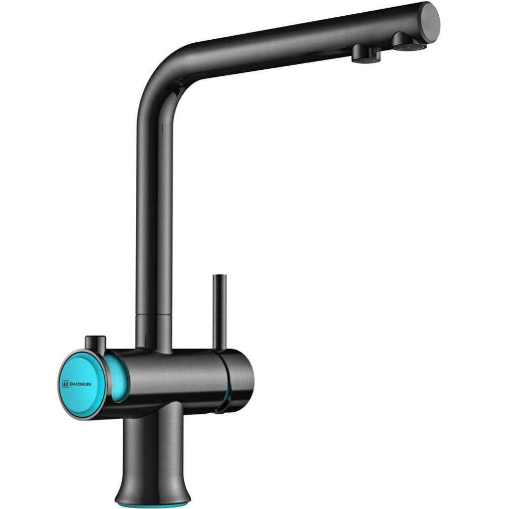 Смеситель для кухни Omoikiri Hotaru с подключением фильтра оснащен рычажным управлением для регулировки температуры и напора воды. Горизонтальный монтаж на 1 отверстие. Поворотный излив 176 мм.