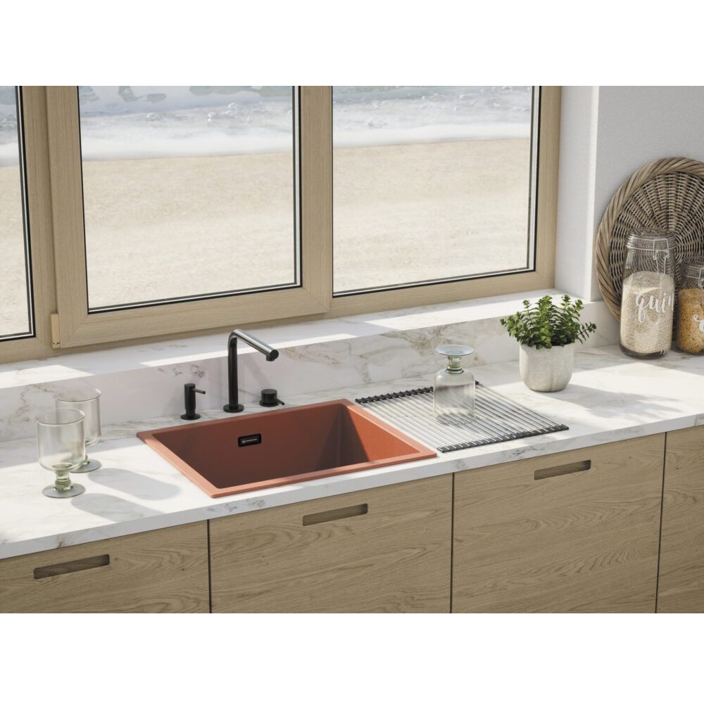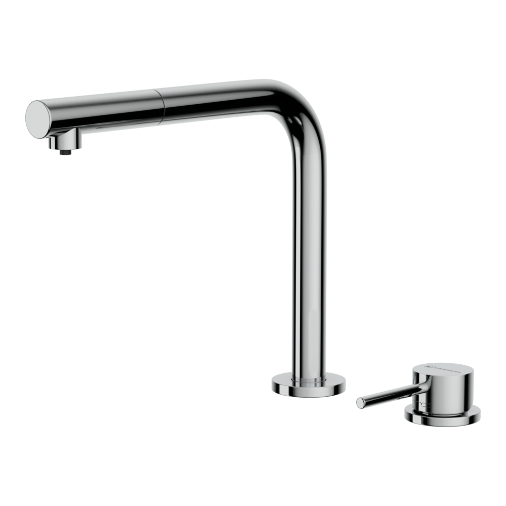 Смеситель для кухни Omoikiri Nara 2 Plus-S с подключением фильтра оснащен рычажным управлением для регулировки температуры и напора воды. Горизонтальный монтаж на 2 отверстия. Вытяжной излив 216 мм.