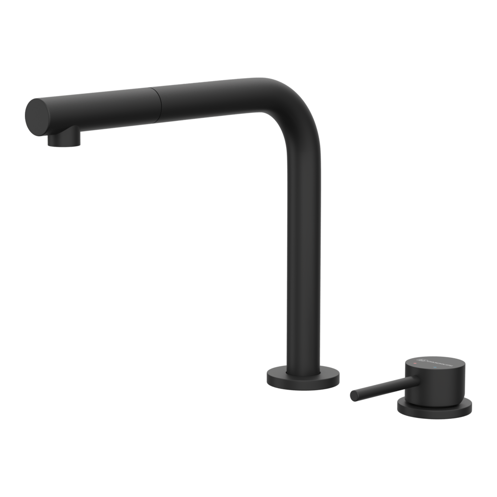Смеситель для кухни Omoikiri Nara-S оснащен рычажным управлением для регулировки температуры и напора воды. Горизонтальный монтаж на 2 отверстия. Вытяжной излив 220 мм.
