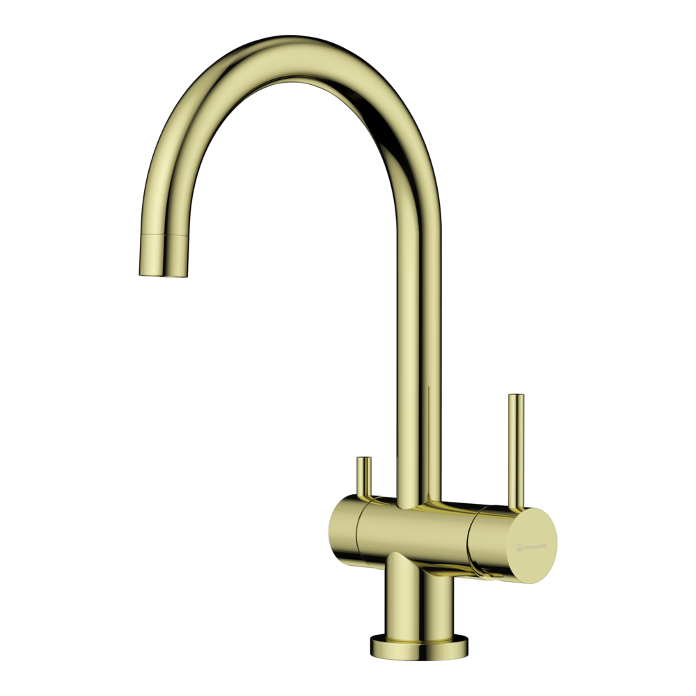 Смеситель для кухни Omoikiri Yamada с подключением фильтра оснащен рычажным управлением для регулировки температуры и напора воды. Горизонтальный монтаж на 1 отверстие. Поворотный излив 204 мм.